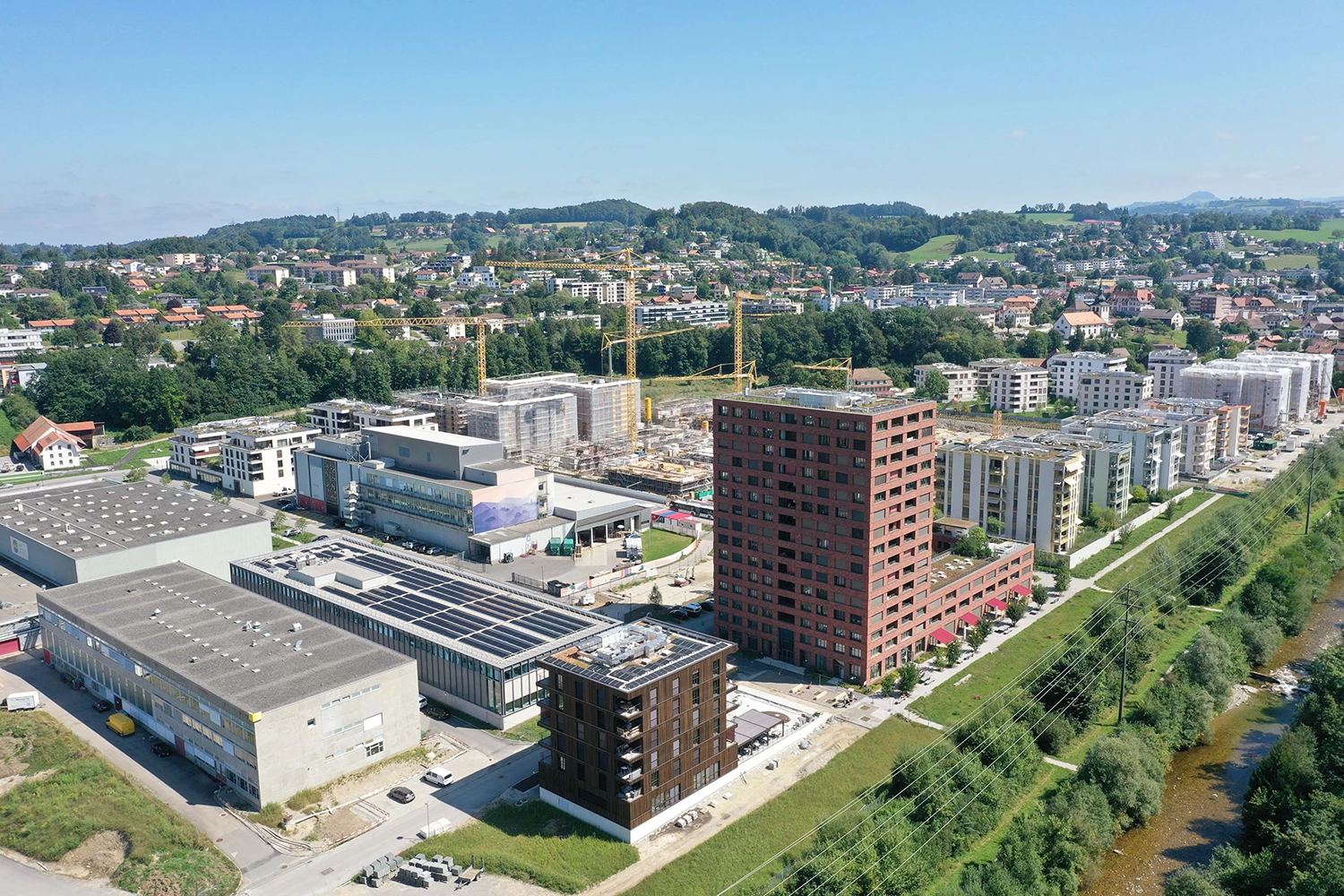 Situé dans l’agglomération de Fribourg, à moins de 30 minutes de Berne, l’écoquartier de l’Ancienne Papeterie se développe aux abords du Marly Innovation Center.